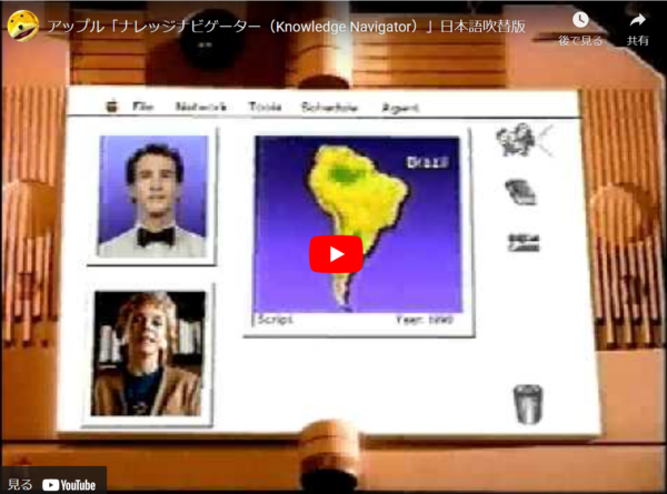 未来のコンピューティングを予見したコンセプトビデオ 1987年。コンピューター産業に携わる人々の間で大きな衝撃を受けた動画があります。 https://www.youtube.com/watch?v=yc8omdv-tBU&t=1s Apple社による「ナレッジ・ナビゲーター」という未来のコンピューティングのコンセプトビデオです。私も同様に衝撃を受け、このナレッジ・ナビ... -